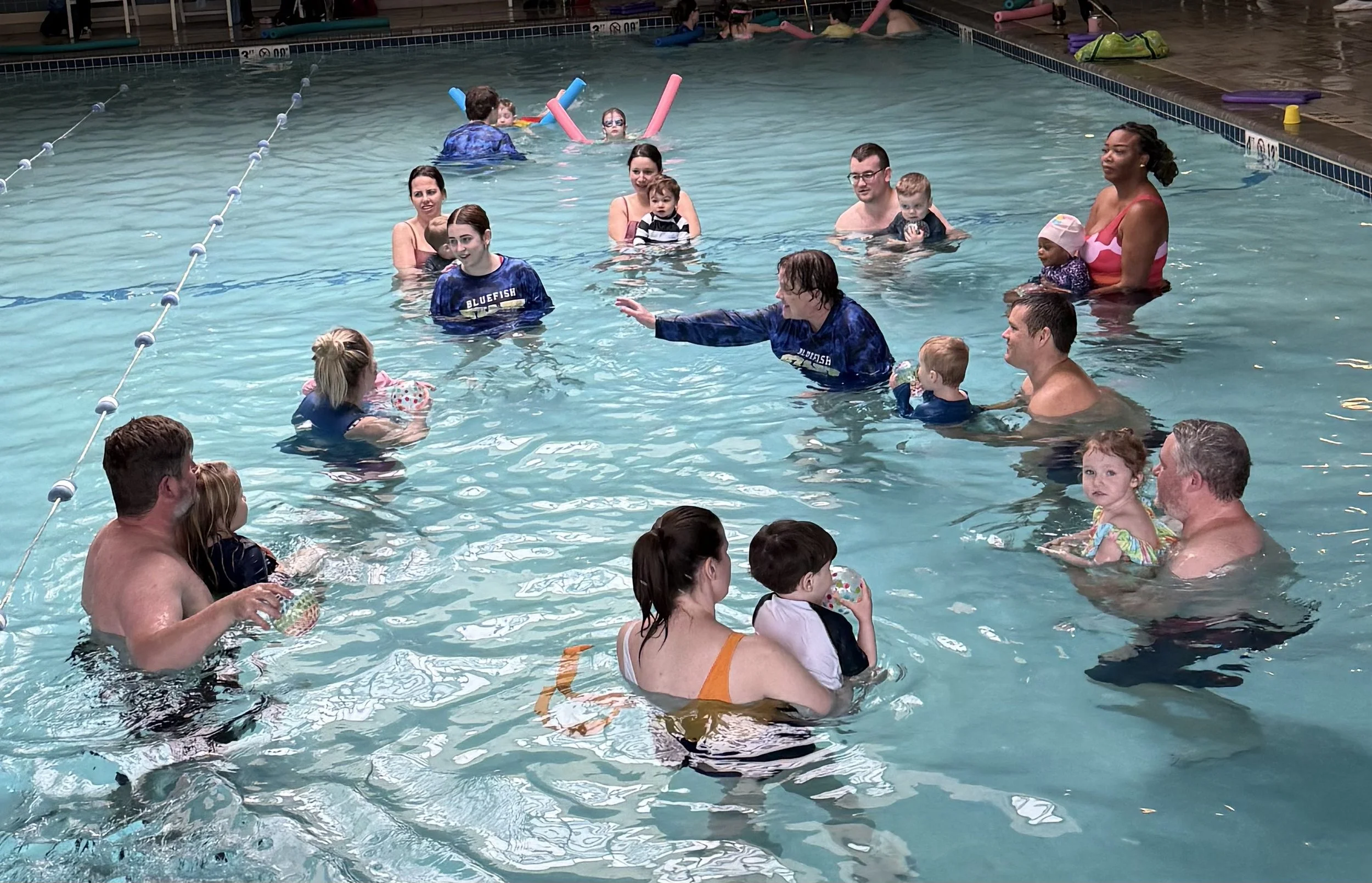 Parent Tot program is for toddlers who are twelve months through three years of age. Children are accompanied by a parent or adult into the water. Student to instructor ratio is 12 to 1. Toddler classes are 30 minutes long. Class instruction is in water adaptation, floating, and kicking. Lesson Fee is $25 per class, priced PER SESSION
